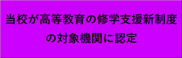 また、当校は制度開始の2019年より日本学生支援機構の「高等教育の修学支援新制度」いわゆる給付型(返済不要)奨学金の対象校です。